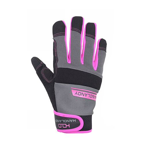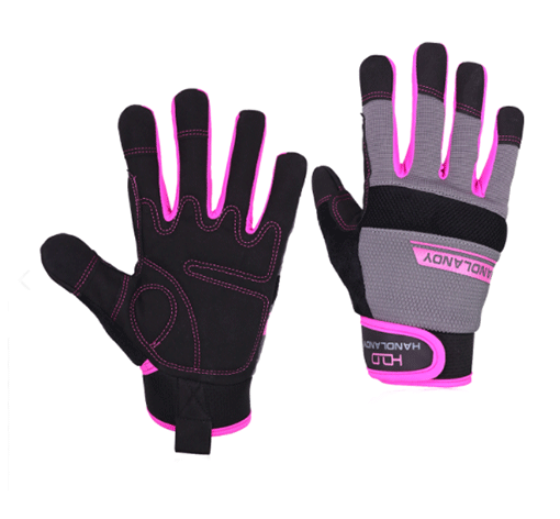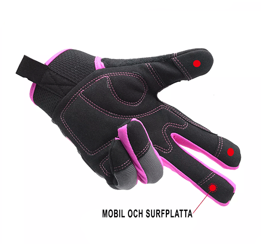 Arbetshandsken är perfekt för varma och svettiga dagar, eftersom handskens tyg (rosa) mellan fingrarna andas och ger lyft, -nu behöver man inte arbeta med svettiga handskar en varm sommardag. Arbetshandsken har vadderad handflata med syntetiskt läder som ger bättre stöd samt skydd mot stötar och vibrationer. Knogen är vadderad där överdelen av handsken är tillverkad av flexibel spandex material, vilket får handsken att vara flexibel med mjuka rörelser samt ger en tålt slitstarkt yta. Med kardborreremmen så får man den perfekt åtsittande passformen vilket gör att man får en stabilare handske som sitter kvar med snabba tyngre lättare lyft.